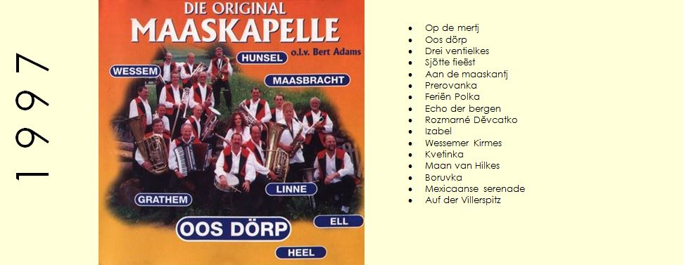 De Maaskapel heeft sinds 1996 tien CD’s geproduceerd voorafgegaan door twee muziekcassettes.